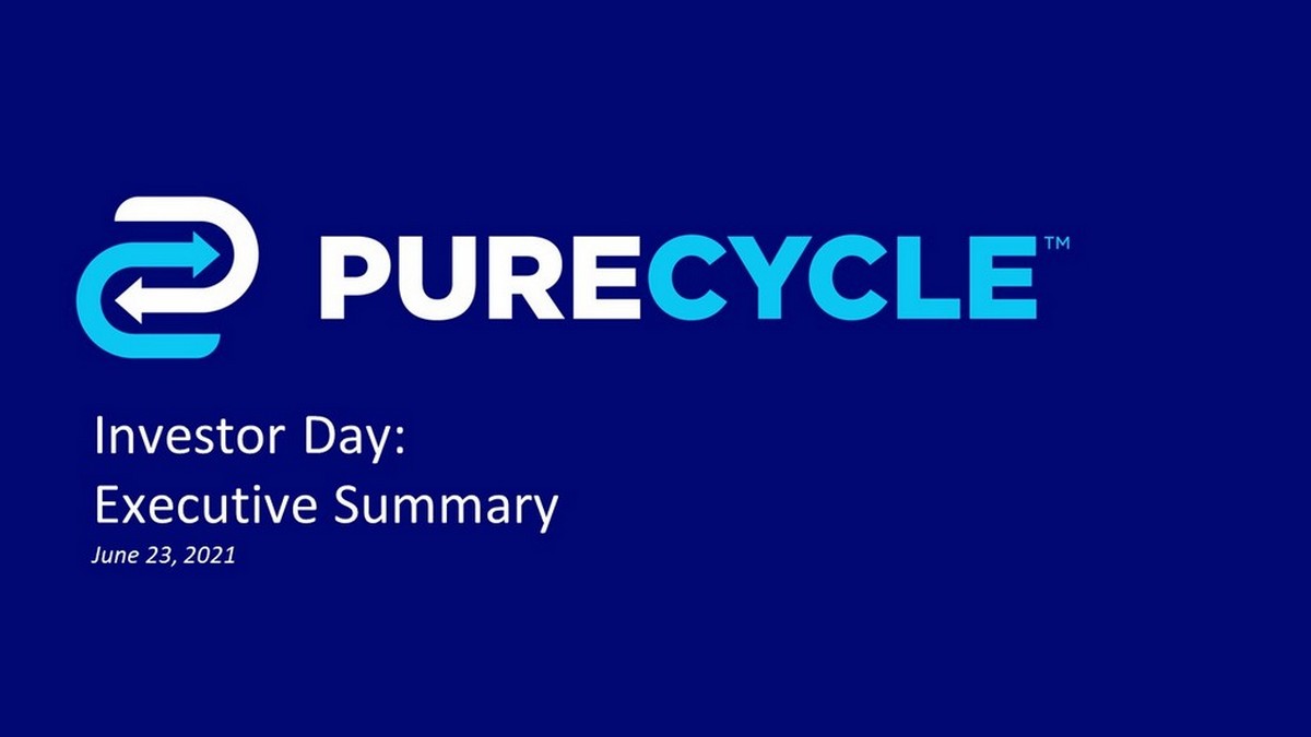 3 Investor Day | June 23, 2021 3 Investor Day: Executive Summary (Cont.) Following the opening remarks, investor day participants will receive presentations from management on the following topics: ▪ Overview of the Feedstock Evaluation Unit – PureCycle management will walk investors through the PureCycle purification process and discuss how the purification process is designed to remove waste plastic and other contaminants from polypropylene to transform waste polypropylene into virgin - like polypropylene. For more details see Exhibit Titled: “Investor Day_ FEU Overview”. ▪ Feedstock Strategy, R&D, and Procurement Approach – the Company will provide an overview of how both plastics and recycling has evolved from the 1930s and discuss PureCycle’s strategy for securing both mixed plastics and waste polypropylene. Chief Manufacturing Officer (Dustin Olson) will discuss the Research and Development prototype that pairs existing recycling equipment with mechanical innovations. For more details see Exhibit Titled: “Investor Day_ Feedstock Overview”. ▪ PureCycle Operations and Execution – PureCycle’s operational leadership team will discuss our strategy across: (i.) module construction and scaling, (ii.) delivering operational excellence and exceptional safety in plant operations, (iii.) discussing how a robust digital strategy shortens plant ramp up and reduces unplanned downtime, and (iv.) an update on how we’ve been collaborating with our partners to meet a broad range of polypropylene specifications. For more details see Exhibit Titled: “Investor Day_ Operations Update”.