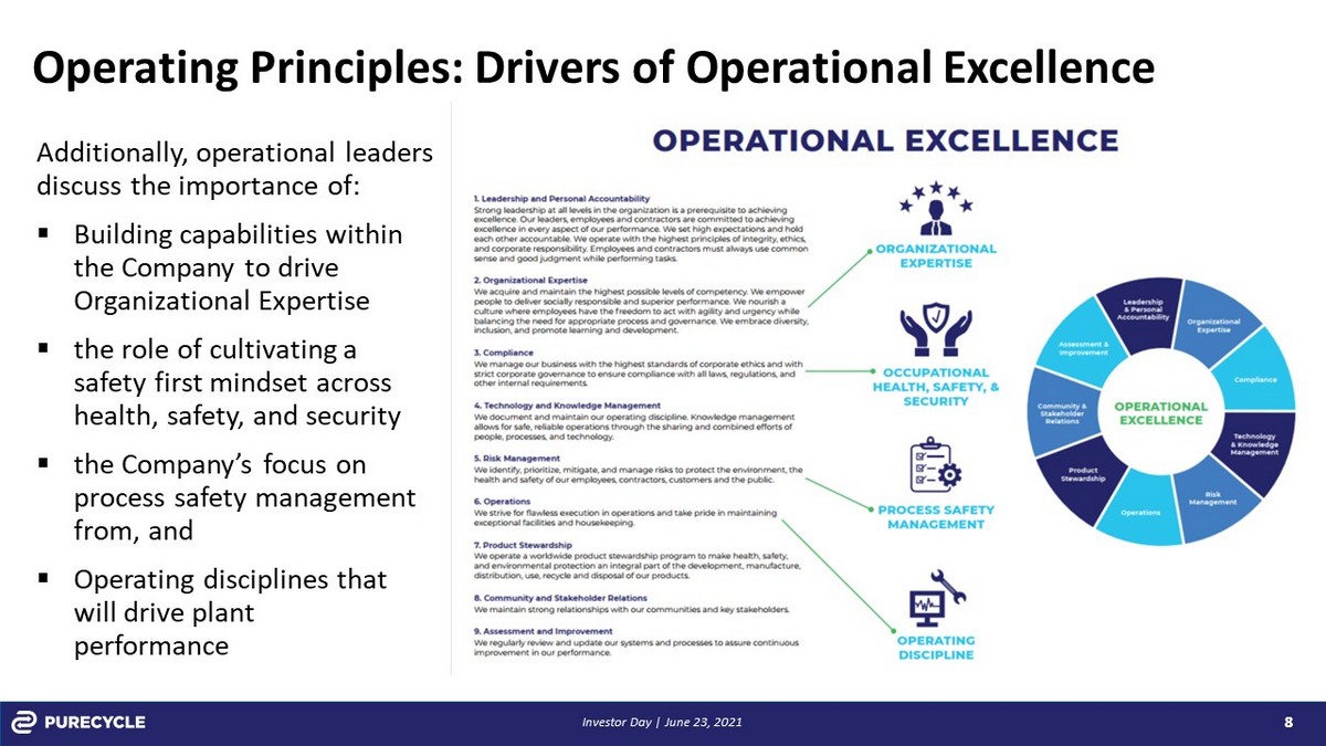7 Investor Day | June 23, 2021 7 Operating Principles: Chemical Facilities Today PureCycle management discuss the range of chemical facilities operating today and management’s focus on seamlessly integrating into the list of chemical facilities that operate safely.