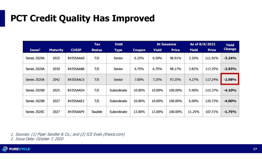 PCT Credit Quality Has Improved 17 1.Sources:(1)PiperSandler&Co.;and(2)ICEEvals(theice.com) 2.IssueDate:October7,2020 Tax Debt At Issuance As of 8/6/2021 Yield Issue 2 Maturity CUSIP Status Type Coupon Yield Price Yield Price Change Series 2020A 2025 84355AAA0 T/E Senior 6.25% 6.50% 98.91% 3.26% 111.91% - 3.24% Series 2020A 2030 84355AAB8 T/E Senior 6.75% 6.75% 98.17% 3.82% 117.25% - 2.93% Series 2020A 2042 84355AAC6 T/E Senior 7.00% 7.25% 97.25% 4.27% 117.24% - 2.98% Series 2020B 2025 84355AAD4 T/E Subordinate 10.00% 10.00% 100.00% 5.90% 115.37% - 4.10% Series 2020B 2027 84355AAE2 T/E Subordinate 10.00% 10.00% 100.00% 6.00% 120.73% - 4.00% Series 2020C 2027 84355AAF9 Taxable Subordinate 13.00% 13.00% 100.00% 11.25% 107.71% - 1.75%