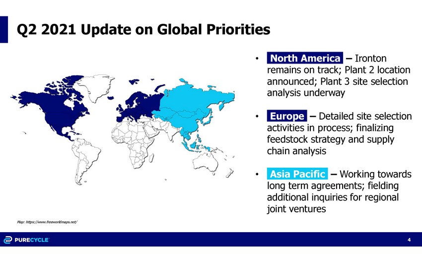 PureCycle has already started the site selection process for the second cluster facility in North America that is anticipated to provide up to 390 million pounds of annual capacity with long lead equipment purchases expected in the first half 2022. In Europe, the Company continues to progress detailed site selection activities and is finalizing its feedstock strategy and supply chain analysis. In Asia, PureCycle is working towards long term agreements in order to expand the Company’s presence in the region.