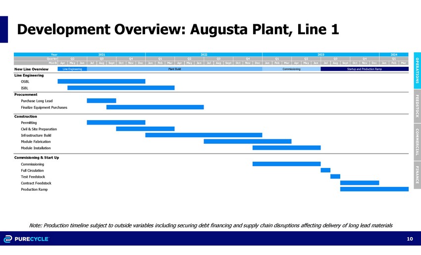 Q 3 Q 4 Q 2 Q 3 Q 1 Q 2 Q 4 Q 1 Q 3 Q 4 Q 1 Q 2 10 7 2 3 7 6 2 7 88 7 1 , 1 4 7 1 , 2 7 7 1 , 27 7 1 , 27 7 Plant 3 (Three Lines) Annual Line Capacity: 130M lbs Europe Annual Line Capacity: 130M lbs Progress Line Engineering Plant Build Commissioning Production Ramp 2 0 2 5 Total Installed Capacity (MM lbs/Qtr) Q 2 1 , 1 4 7 3 6 7 10 7 Q 4 20 2 1 2 0 2 2 2 0 2 3 Line 10 2 0 2 4 2020 Q 4 Q 1 Q 2 Ironton, Ohio Plant Annual Line Capacity: 107M lbs Line 1 Augusta, Georgia Plant (Five Lines) Annual Line Capacity: 130M lbs Line 2 Line 3 Line 4 Line 6 Line 8 Line 5 Line 7 Line 9 Q 1 Q 3 The Path to 1 Billion Pounds of Production in 2025 O PER A T I ON S Note:Productiontimelinesubjecttooutsidevariablesincludingsecuringdebtfinancingandsupplychaindisruptionsaffectingdeliveryoflon gle admaterials 9 F E ED ST O C K COMMERCIAL FINANCE