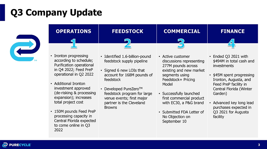 PureCycle Technologies Provides Third Quarter 2021 Update