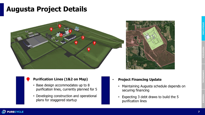 7 7 • Project Financing Update • Maintaining Augusta schedule depends on securing financing • Expecting 3 debt draws to build the 5 purification lines Augusta Project Details OPERATIONS FEEDSTOCK COMMERCIAL FINANCE 2 4 1 3 5 6 7 8 • Purification Lines (1&2 on Map) • Base design accommodates up to 8 purification lines, currently planned for 5 • Developing construction and operational plans for staggered startup